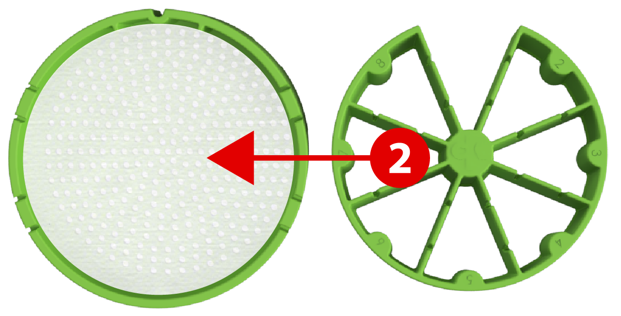 Start by placing a filter paper into the strainer and reinstalling the partition. This setup ensures moisture control while keeping seed varieties separated.